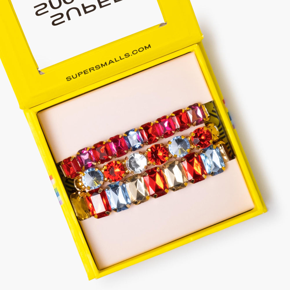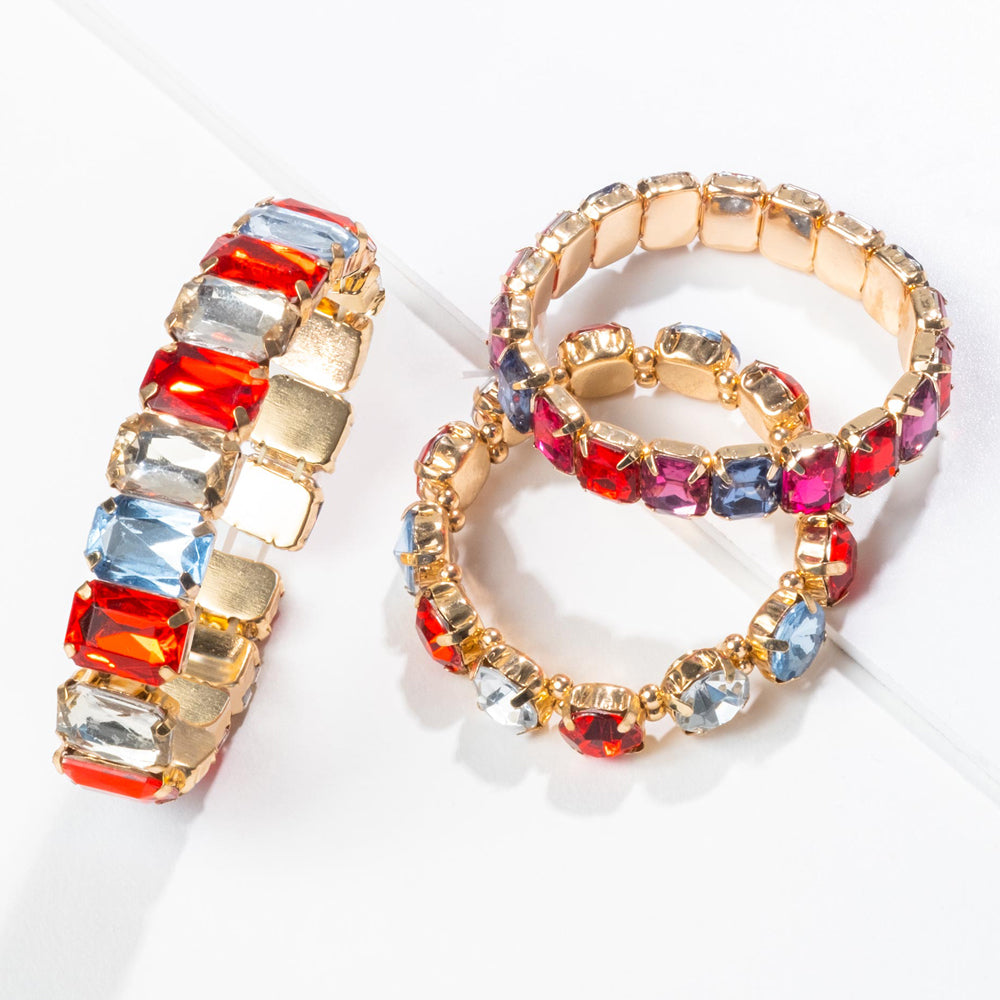 - Three colorful bracelets for fun layering, measuring approx. 3” diameter