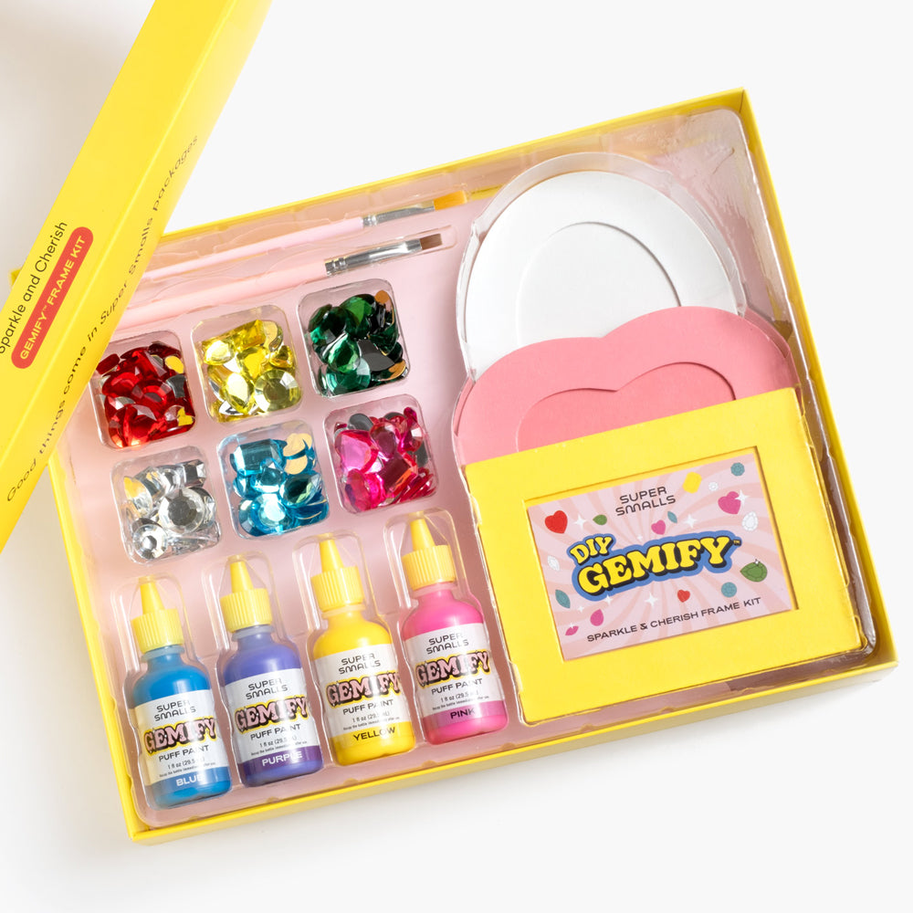 Make your favorite moments shine with the Sparkle and Cherish Gemify™ Frames Craft Kit! This all-in-one DIY set comes with 3 photo frames, 4 puff paint colors, and a sparkly mix of colorful gems, giving you everything you need to decorate, dazzle, and display. Whether it’s silly snapshots or your favorite masterpieces, this kit is perfect for giving every memory a frame as fabulous as the moment itself.